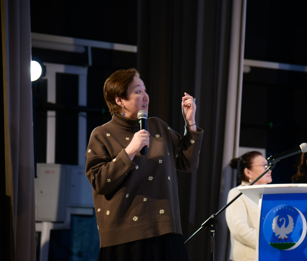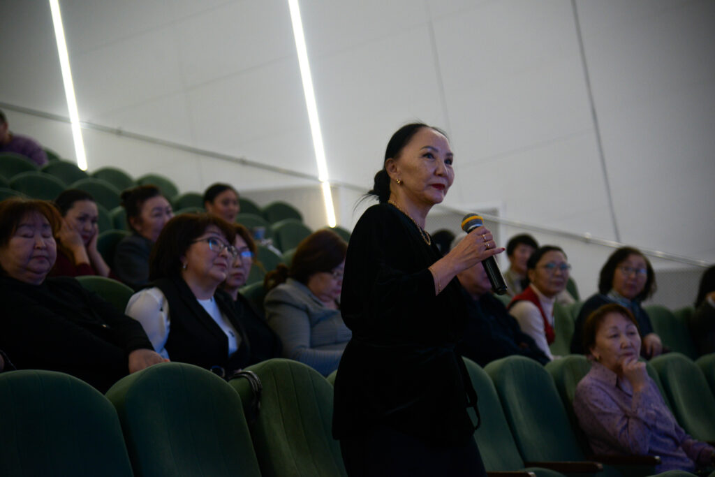 Бу кэннэ, аудитория этиилэригэр киирдибит. Ол курдук, Нам улууһун култуура эйгэтин Идэлээх сойууһун кэмитиэтин салайааччыта Александра Алексеевна Парникова, Хамаҕатта нэһилиэгин “Түһүлгэ” норуот айымньытын Киинин директора Антонина Алексеевна Харитонова, П.И.Сивцев аатынан История уонна этнография түмэлин киновидеоархивын кииниттэн Вера Дмитриевна Попова, Анастасия Степановна Заболоцкая, Үөдэй нэһилиэгин В.А.Зырянов аатынан “Сарыал” Култуурнай Киин директора Геннадий Геннадиевич Игнатьев, Хатыҥ-Арыы нэһилиэгин “Чороон” норуот айымньытын Киинин директора Саргылана Даниловна Пономарева, Никольскай нэһилиэгин И.С. Шарапов аатынан Сири оҥоруу түмэлин директора Прасковья Романовна Протопопова кэрэ эйгэбит Бэлиэ сылыгар саҥа сүүрээннэр олоххо киирдиннэр диэн туран Нам улууһугар култуура сайдыытыгар туһуламмыт санааларын эттилэр.